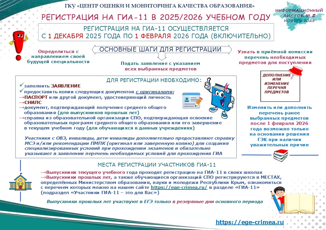 Инф.листок_Регистрация на ГИА-11 в 2025-2026 уч.году